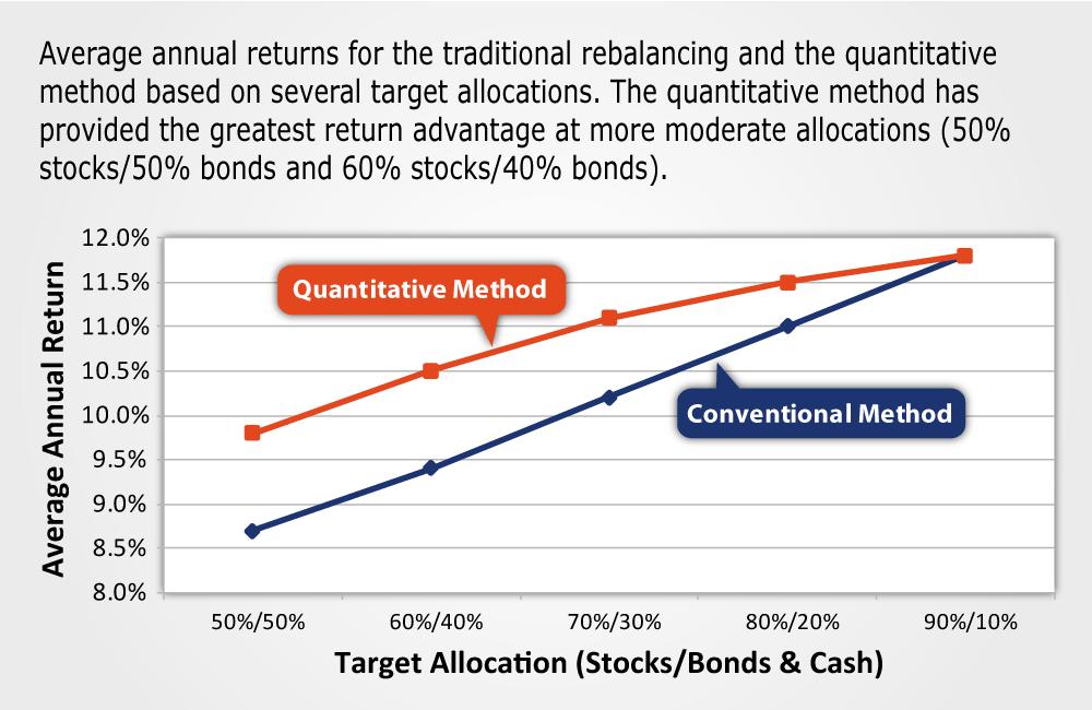bonds/cash) no matter when rebalancing takes place. The advantage in returns